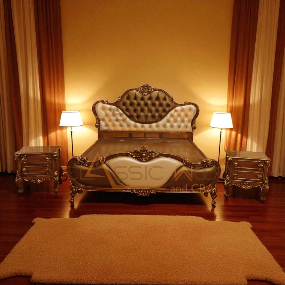 Dual-Tone Royal King Size Bed with Tufted Leatherette Headboard & Footboard – Classic Walnut Finish