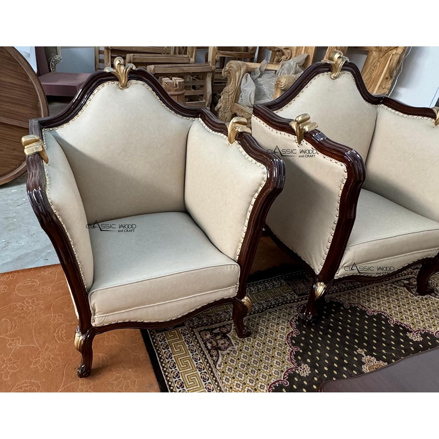 Luxury Handcrafted Victorian Sofa Set (3+2+1+1), thoughtfully designed to bring royal elegance and timeless sophistication into your home. Crafted from premium solid wood, the sofa set features classic Victorian curves, ornate hand-carved details, and a rich polished finish that reflect true heritage craftsmanship. The graceful silhouettes and traditional styling make it an exquisite centerpiece for luxury living rooms.