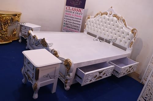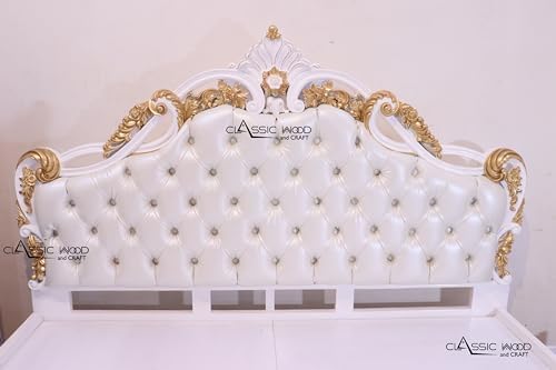 - PREMIUM TEAK WOOD Constructed from A+ grade teak wood for exceptional strength and durability, ensuring long-lasting stability. Teak wood is used after seasoning and chemical treatmentnto make it fungus and termite resistance and to serve it lofelong. Luxurious Design: Features a royal combination of golden accents on a white wooden frame, adding elegance to any bedroom.