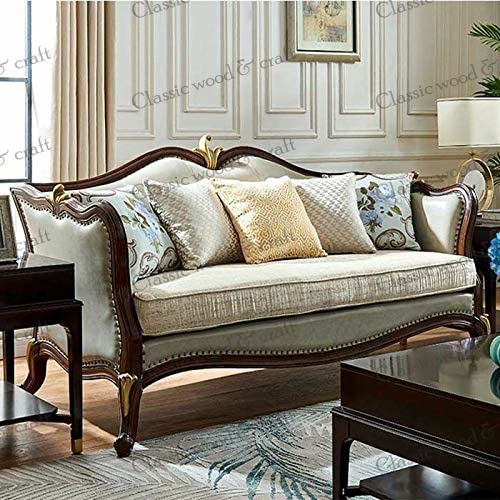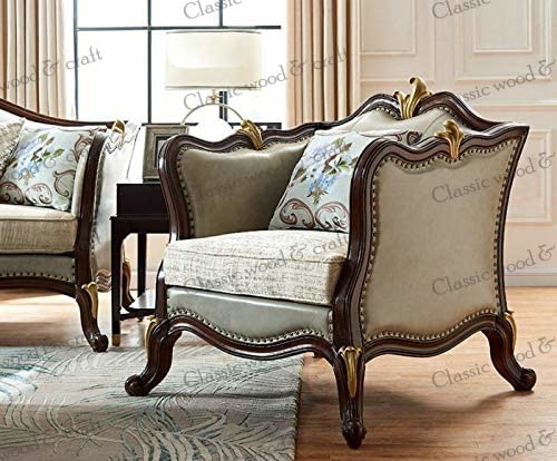 • DIMENSIONS OF EACH PRODUCT Three seater size(LBH): 6×2.5×3 feet. two seater 4.5×2.5×3 feet. The product include 2 Three seater, 2 Two seater sofa seat. This amazing sofa set is made in Teak wood with robust structure, shape and carving. The wood is used is of premium quality Teak wood. Sofa set design and drawing is designed by best furniture expert artist of Classic wood & craft industry.